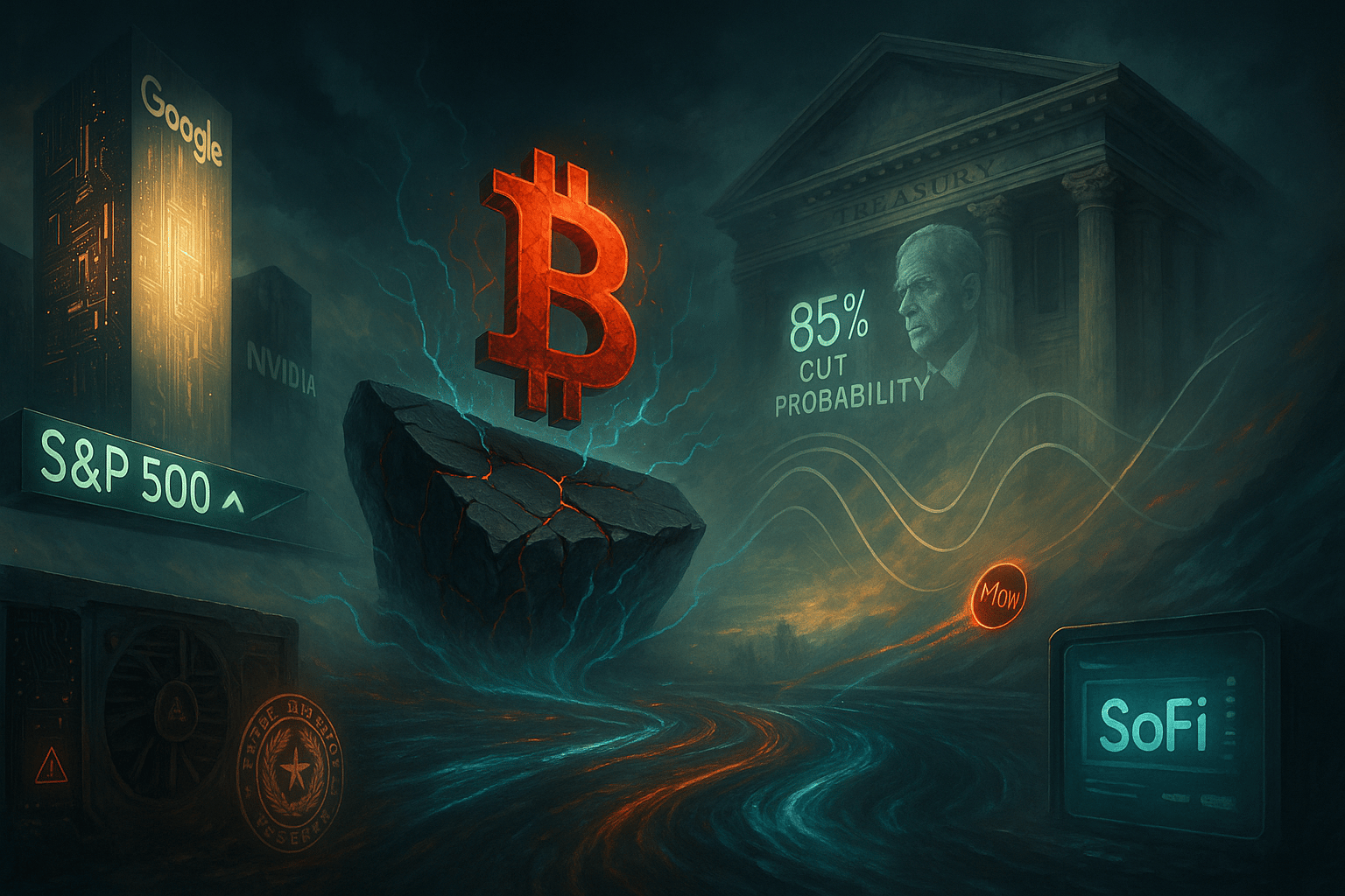 Equities are cruising toward new highs on an 85% December cut probability as Alphabet sprints toward a 4 trillion dollar valuation, Nvidia stumbles, and crypto trades max fear even while Texas, SoFi, and derivatives desks quietly rewire the rails under the surface.