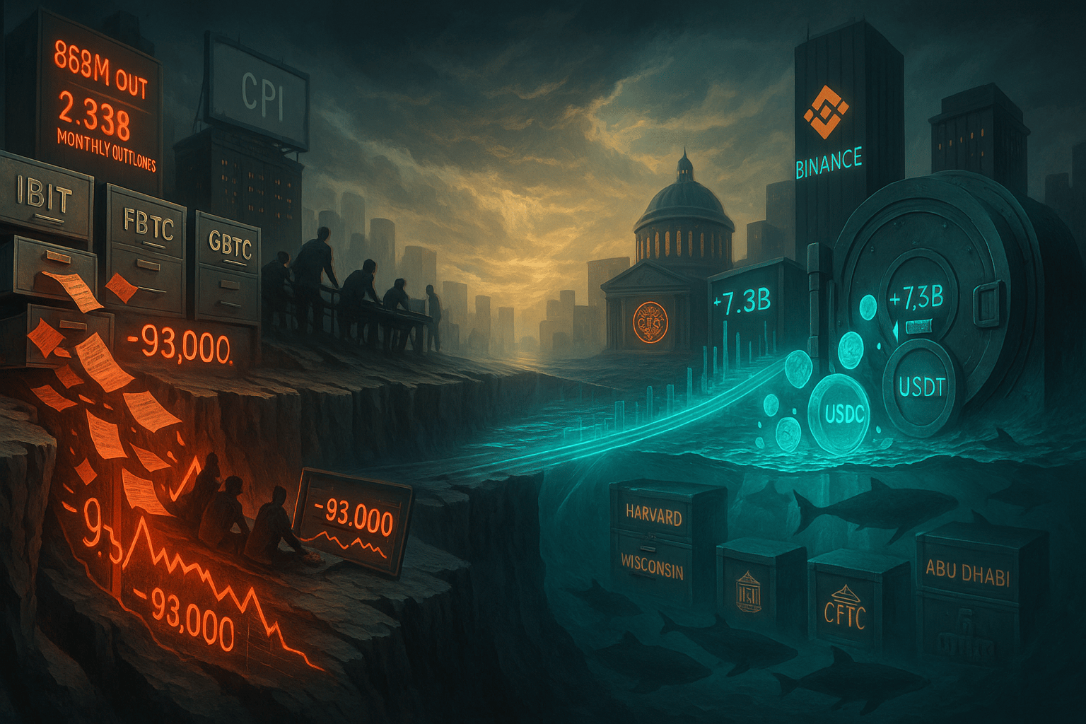 While ETF flows turned red, Harvard tripled its Bitcoin exposure, whales quietly accumulated 36,000 BTC, and more than $7.3 billion in stablecoins moved into Binance…