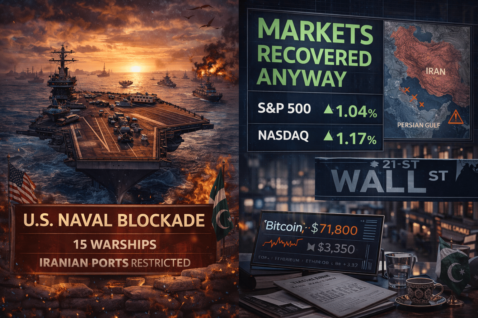 The U.S. deployed 15 warships and began restricting Iranian ports. Oil moved back toward $100. Stocks recovered anyway. The system is absorbing escalation, not reacting to it.